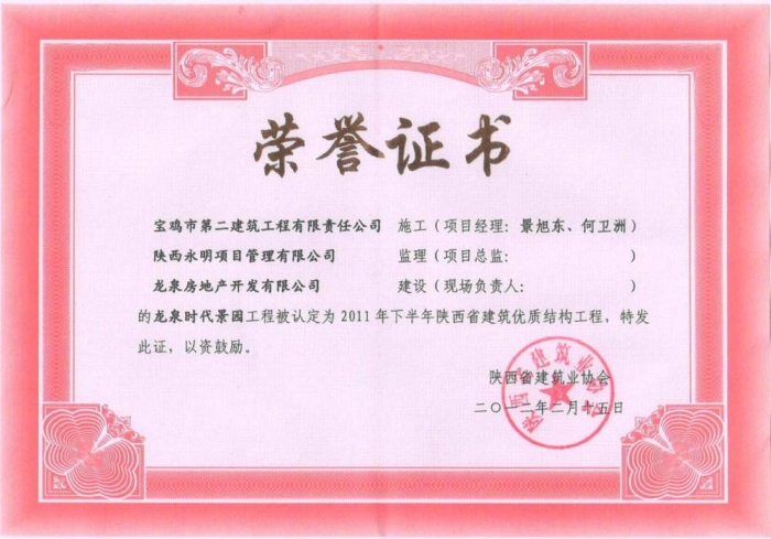 2011年省優(yōu)質(zhì)結(jié)構(龍泉時代)