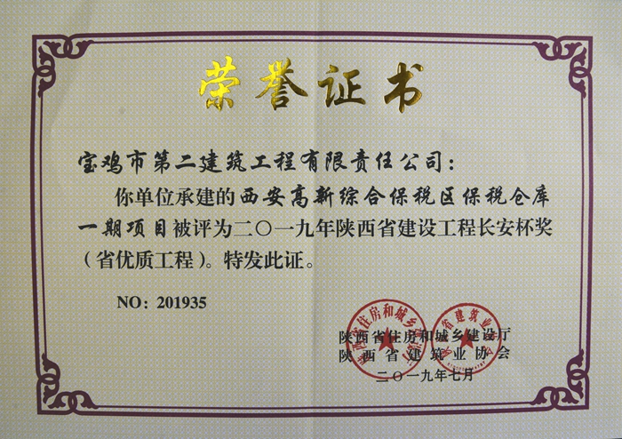 2019年陜西省建設(shè)工程長(zhǎng)安杯獎(jiǎng)(西安高新綜合保稅區(qū)保稅倉(cāng)庫(kù)一期項(xiàng)目)