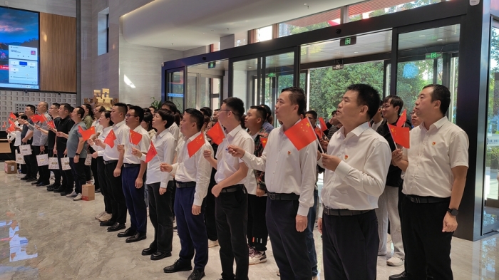 閉幕式上,大家揮動著手中鮮艷的五星紅旗,深情合唱《歌唱祖國》,嘹亮的歌聲響徹整個辦公大樓,將全場氣氛再次推向高潮,唱出了寶雞二建人對祖國的無限熱愛和深情祝福。