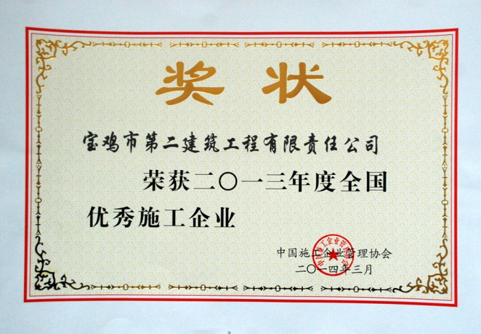 2013年度全國(guó)優(yōu)秀施工企業(yè)